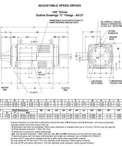 AS Drives are a combination of an air-cooled, adjustable speed clutch and an integrally mounted NEMA B, AC induction motor. The Drive transmits constant torque at variable speeds. There is no physical contact between input and output members. This results in smooth response, thereby eliminating shock loading and extending equipment life. All drives have a CFace endbell on both ends, TEFC Construction and an internal tachometer generator mounted around the output shaft to provide a feedback signal to the drive’s controller. The controller provides the DC excitation for the clutch coil. The feedback signal from the tachometer generator is compared to a reference signal within the controller to maintain accurate speed regulation.